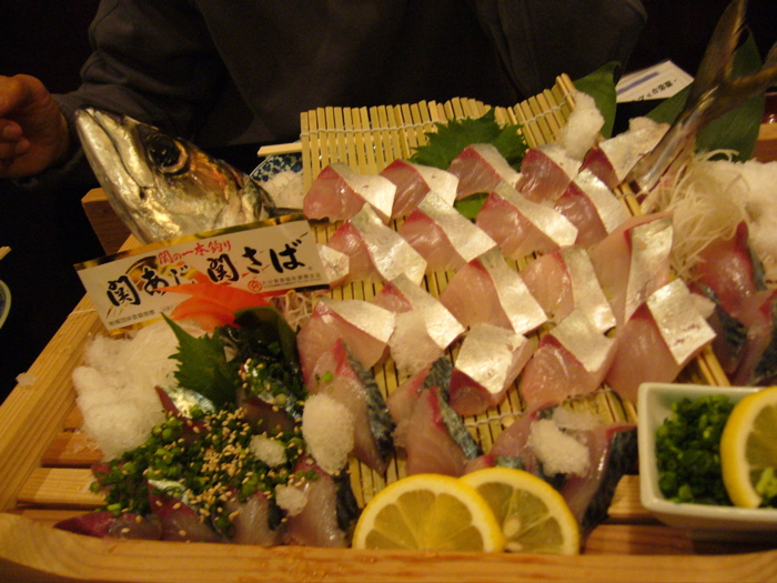 この日も関サバ、イカの活き造りから