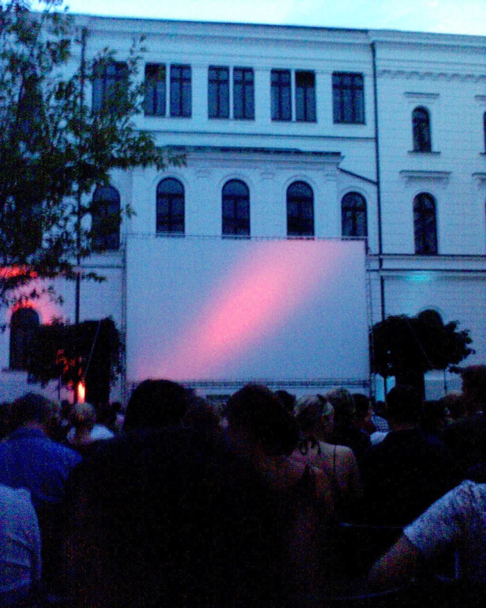 公園とかに大きいスクリーンが建てられて、夜風に当たりながら