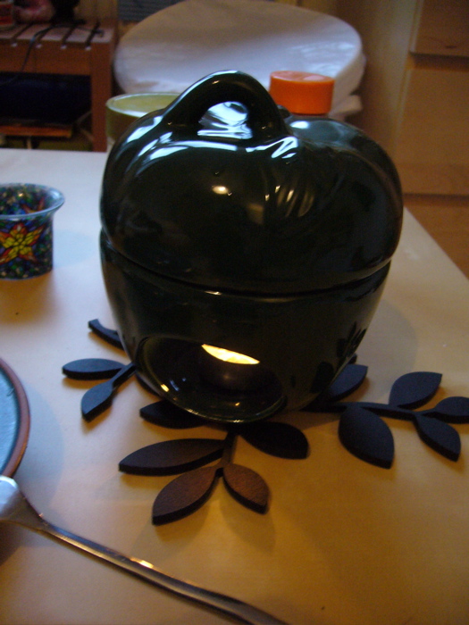 下にティーライト、上は半分に切ったりんごが入ります。